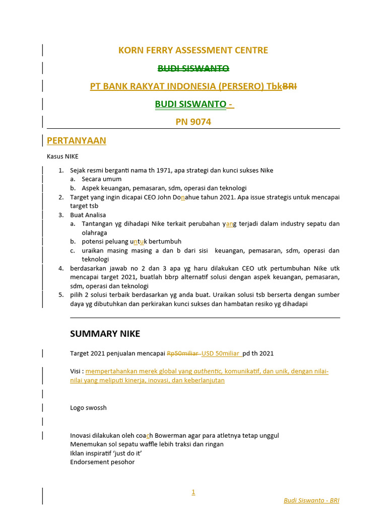 1. Sejak resmi berganti nama th 1971, apa strategi dan kunci sukses Nike