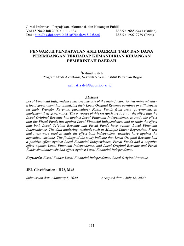 Anas, M. I. (2018). Analisis Pengaruh Pendapatan Asli Daerah dan Dana Perimbangan