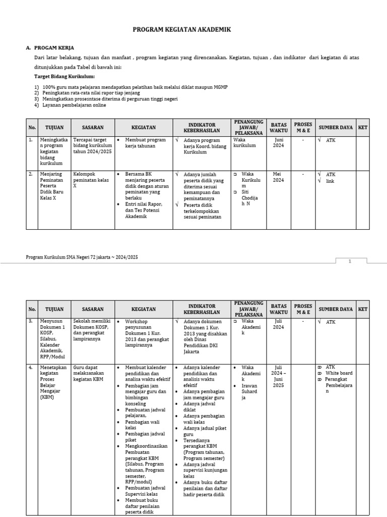 Program Kurikulum SMA Negeri 72 jakarta ~ 2024/2025