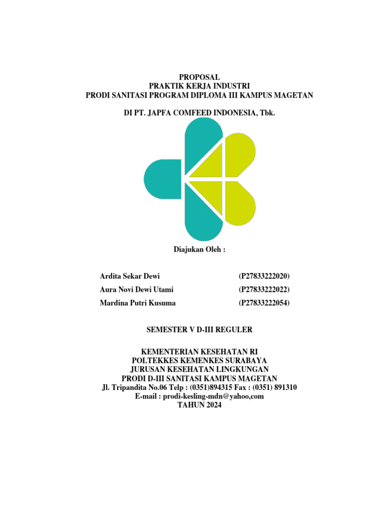 Proposal Praktik Kerja Industri mahasiswa Prodi D-III Sanitasi Kampus Magetan yang