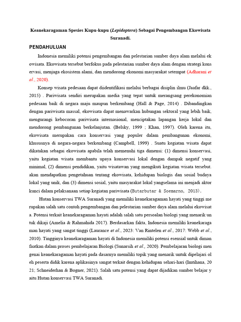 ervasi, menjaga ekosistem alami, dan mendorong ekonomi masyarakat setempat (Adharani et