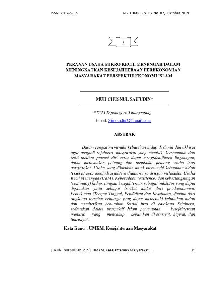 [ Muh Chusnul Saifudin ] UMKM, Kesejahteraan Masyarakat ….. 19