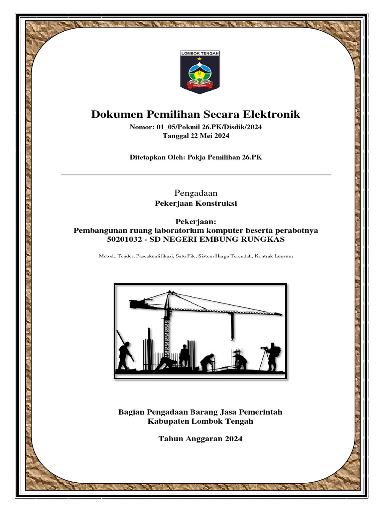 Metode Tender, Pascakualifikasi, Satu File, Sistem Harga Terendah, Kontrak Lunsum