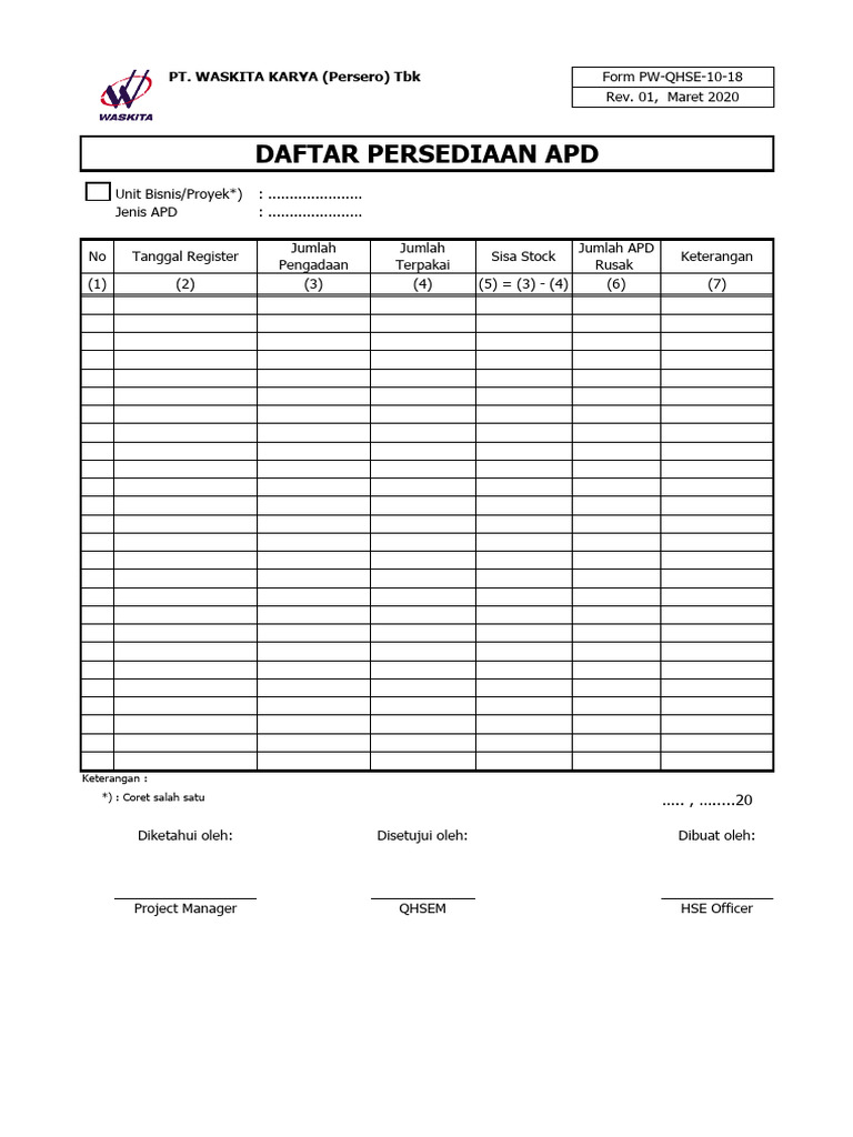 PT. WASKITA KARYA (Persero) Tbk Form PW-QHSE-10-20