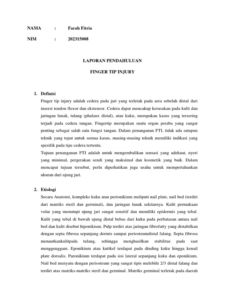 Finger tip injury adalah cedera pada jari yang terletak pada area sebelah distal dari