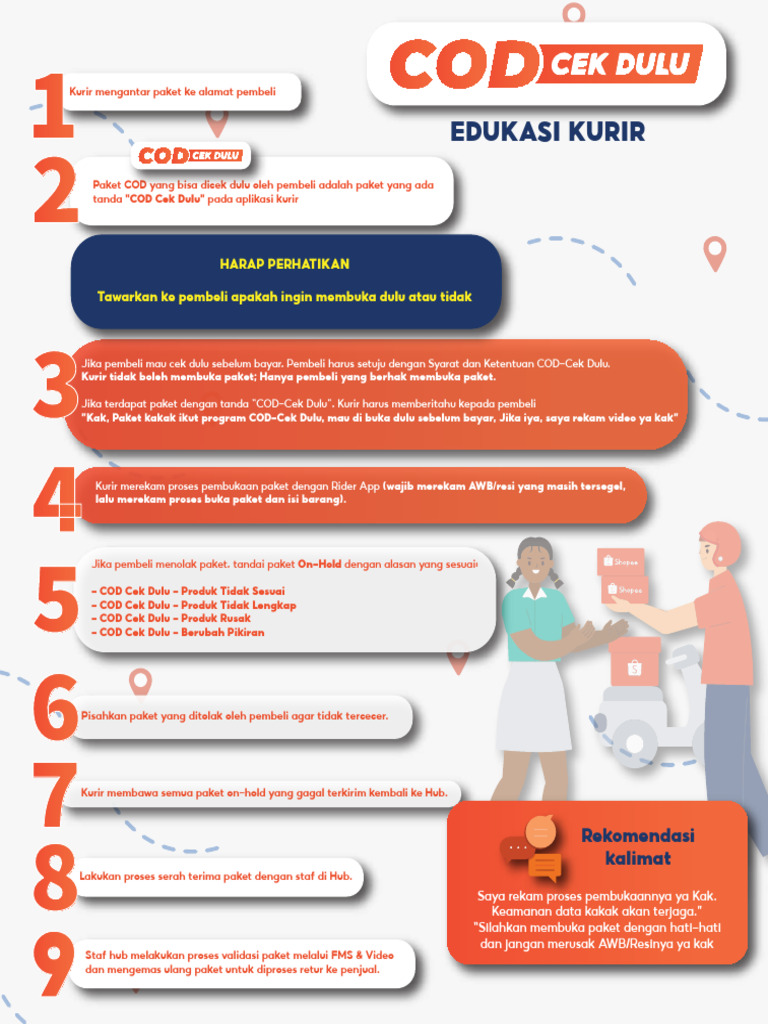 Jika terdapat paket dengan tanda “COD-Cek Dulu”, Kurir harus memberitahu kepada pembeli