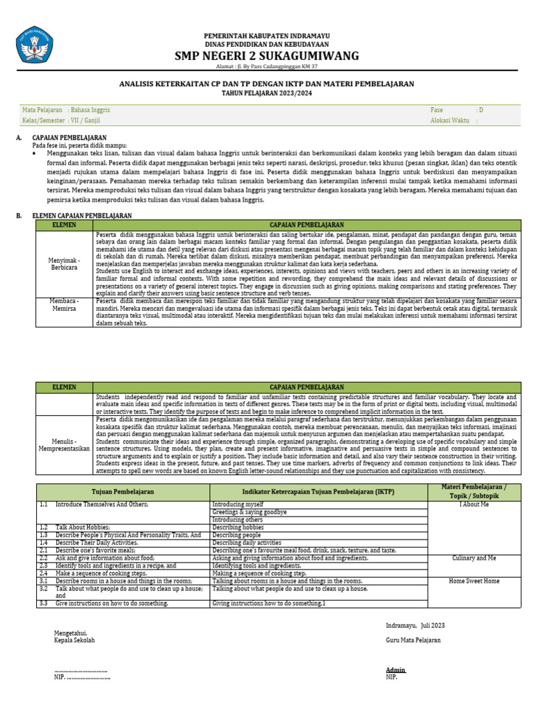 ANALISIS KETERKAITAN CP DAN TP DENGAN IKTP DAN MATERI PEMBELAJARAN