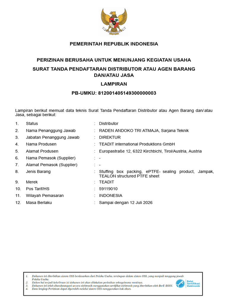 4. Nama Produsen : TEADIT international Produktions GmbH
