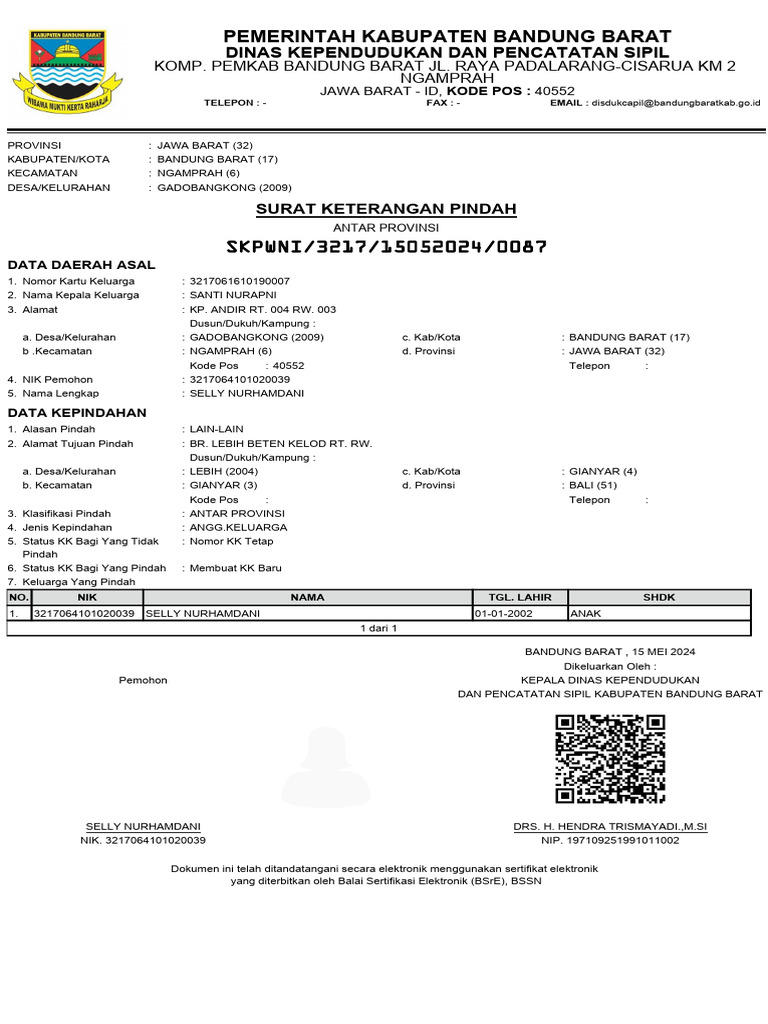 1. 3217064101020039 SELLY NURHAMDANI 01-01-2002 ANAK