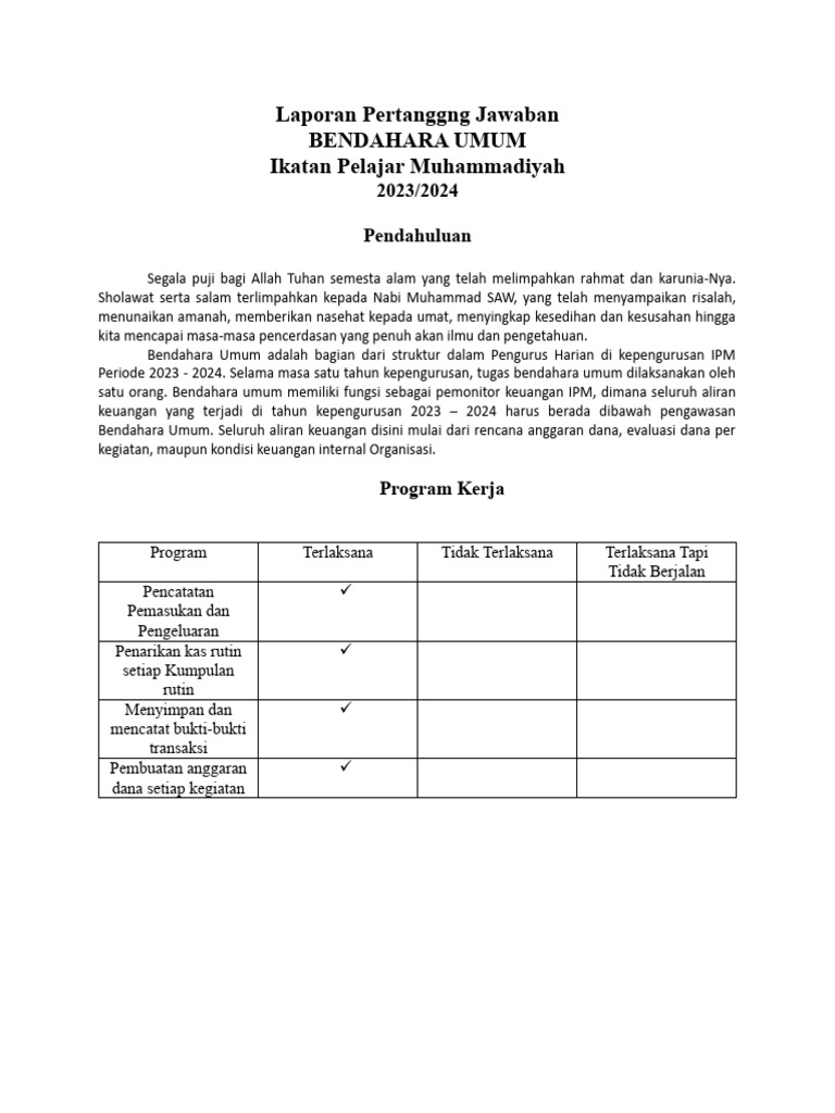 Periode 2023 - 2024. Selama masa satu tahun kepengurusan, tugas bendahara umum dilaksanakan oleh