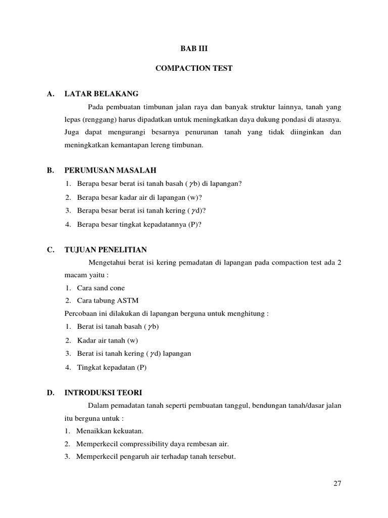 salah satu cara mekanis. Untuk setiap daya pemadatan tertentu kepadatan yang tercapai