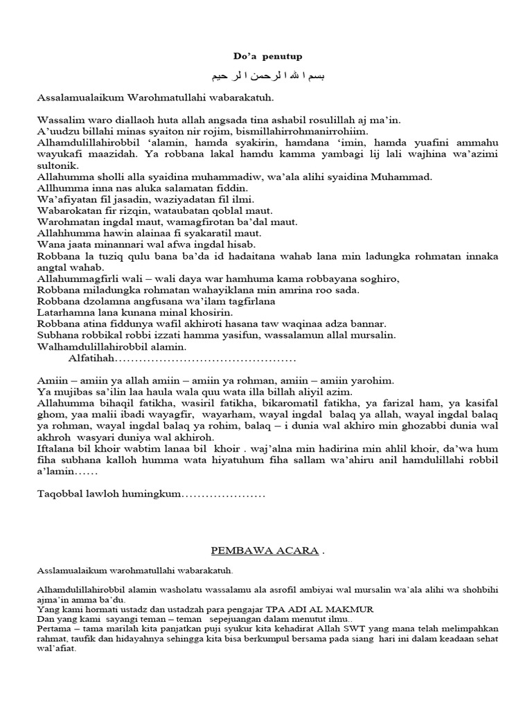 Tibalah saatnya kita memasuki acara yang terakhir yaitu penutup, marilah kita tutup acara yasin siang hari ini