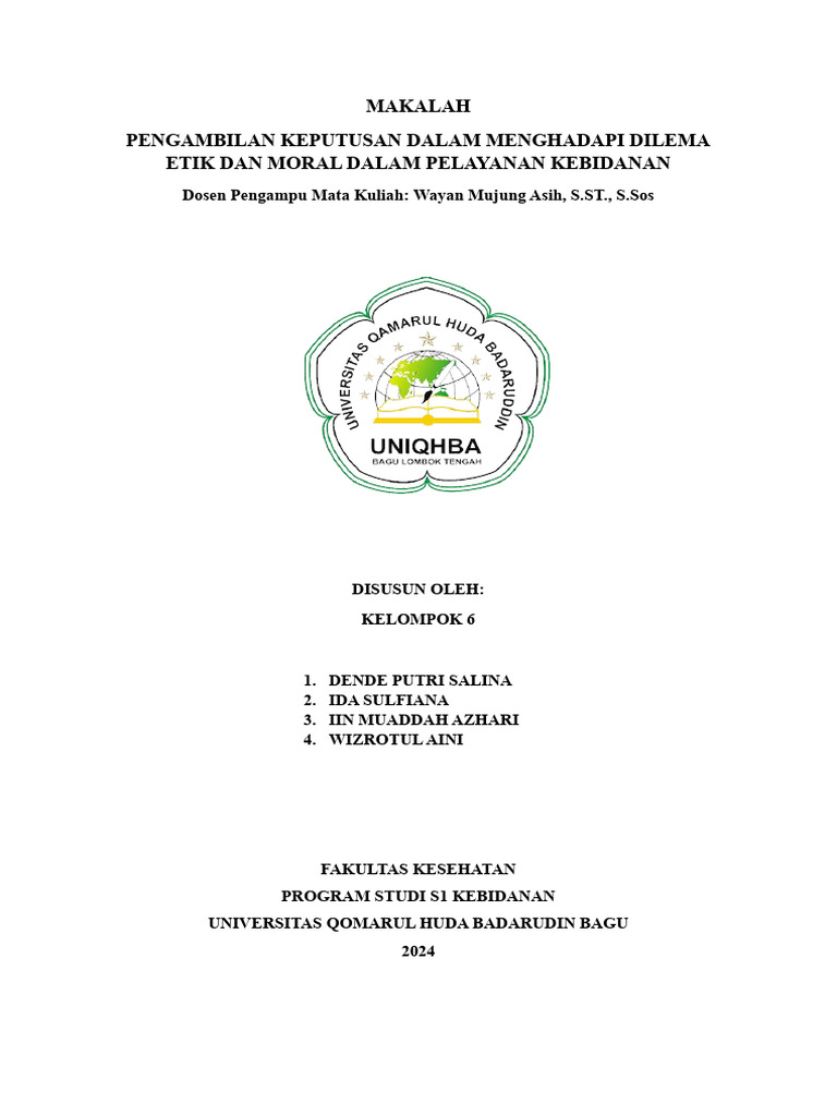 Pengambilan Keputusan dalam Menghadapi Dilema Etik Moral Dalam Pelayanan Kebidanan.