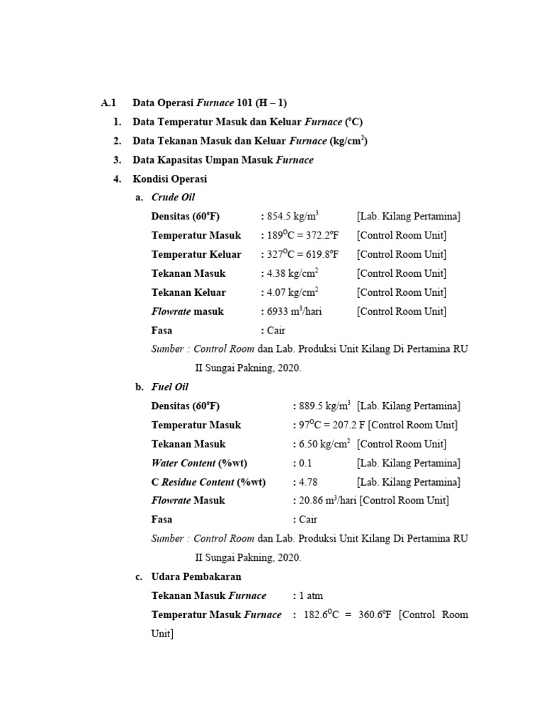 A.2 Perhitungan Neraca Panas dalam Furnace 101 (H – 1)