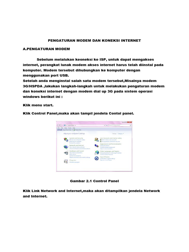 PENGATURAN MODEM DAN KONEKSI INTERNET