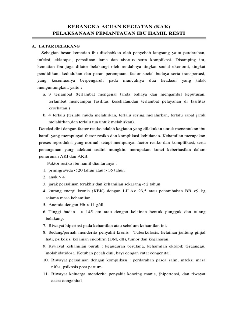 1. Kegiatan pokok : Melaksanakan pemantauan ibuhamil resti