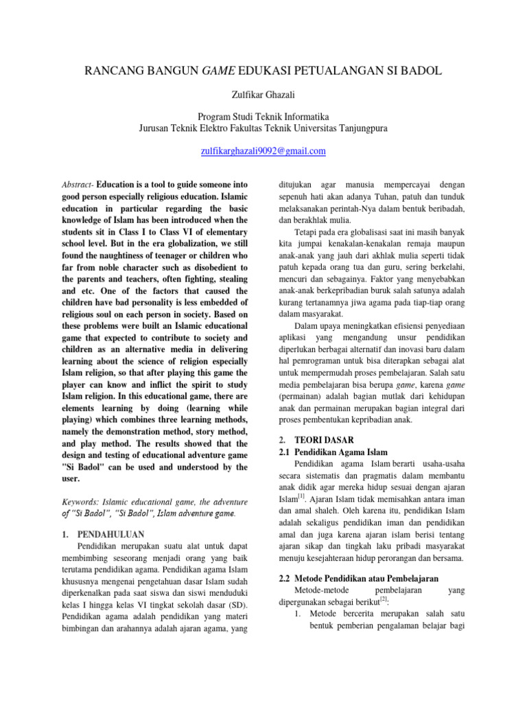 of “Si Badol”, “Si Badol”, Islam adventure game. dan amal shaleh. Oleh karena itu, pendidikan Islam
