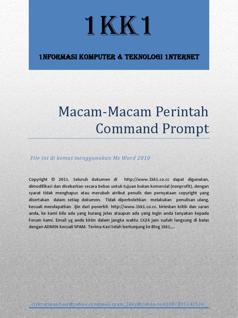 = Menjadwalkan CMD untuk beberapa waktu kemudian = Sort input = Membuka sebuah window baru = Switch User = Edit file & folder Permissions, Ownership serta Domain = Menyesuaikan sebuah path dengan drive letter = Menampilkan daftar system configuration = Menampilkan daftar aplikasi dan service yang sedang berjalan = Menampilkan atau mengubah waktu pada system = Delay processing sebuah batch file = Menentukan judul window untuk sebuah session CMD.EXE = Mengubah timestamps sebuah file = Melacak route ke sebuah remote host = Tampilan grafis dari struktur folder = Menampilkan isi dari sebuah text file = Menampilkan daftar domain usernames dan last login = Menampilkan version information = Memeriksa apakah files telah ter-save = Menampilkan disk label = Mencari dan menampilkan files di dalam sebuah directory tree = Menampilkan current UserName dan current domain = Membandingkan isi dari dua atau lebih file. = Windows system diagnostics = Windows system diagnostics II = WMI Commands = Mengubah file permissions (hak akses) = Copy files dan folders = Memasukkan/ menambah user ke/dari file CSV. = Address Resolution Protocol = File extension associations = One step file association = Perintah untuk membuat shedule program