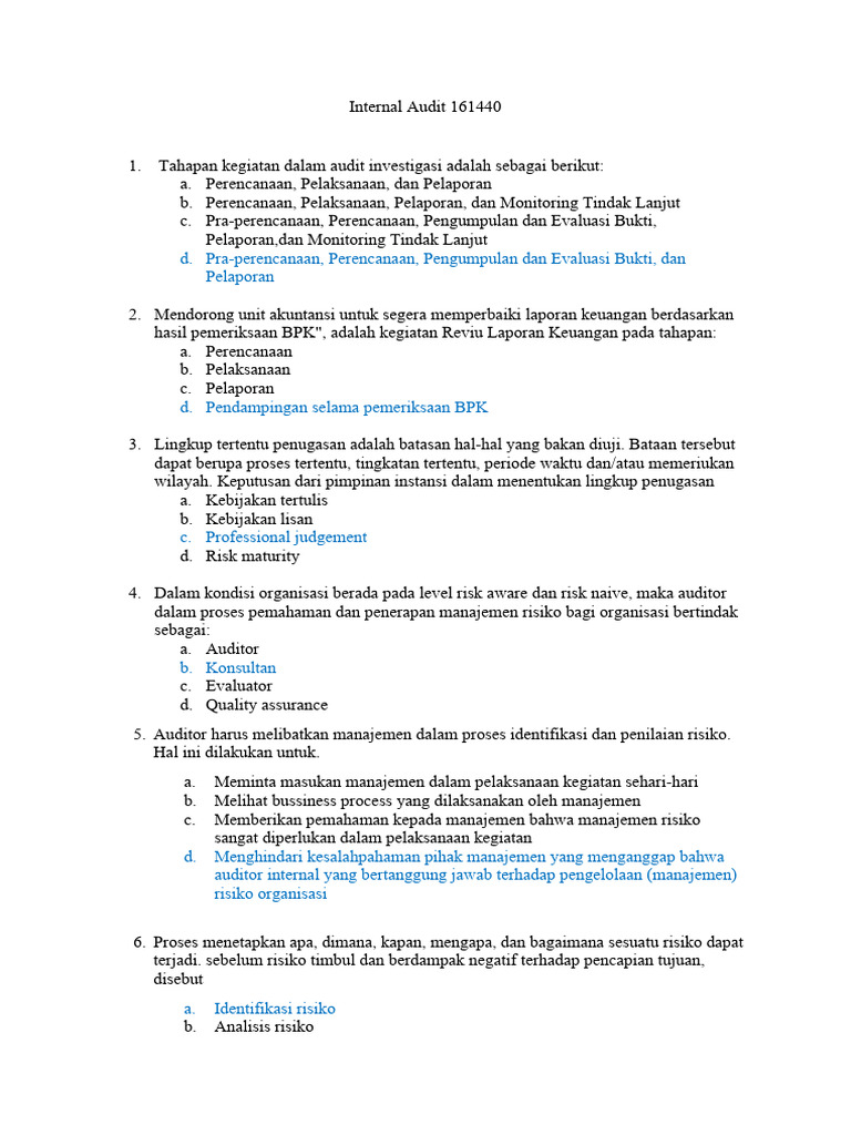 auditor internal yang bertanggung jawab terhadap pengelolaan (manajemen)
