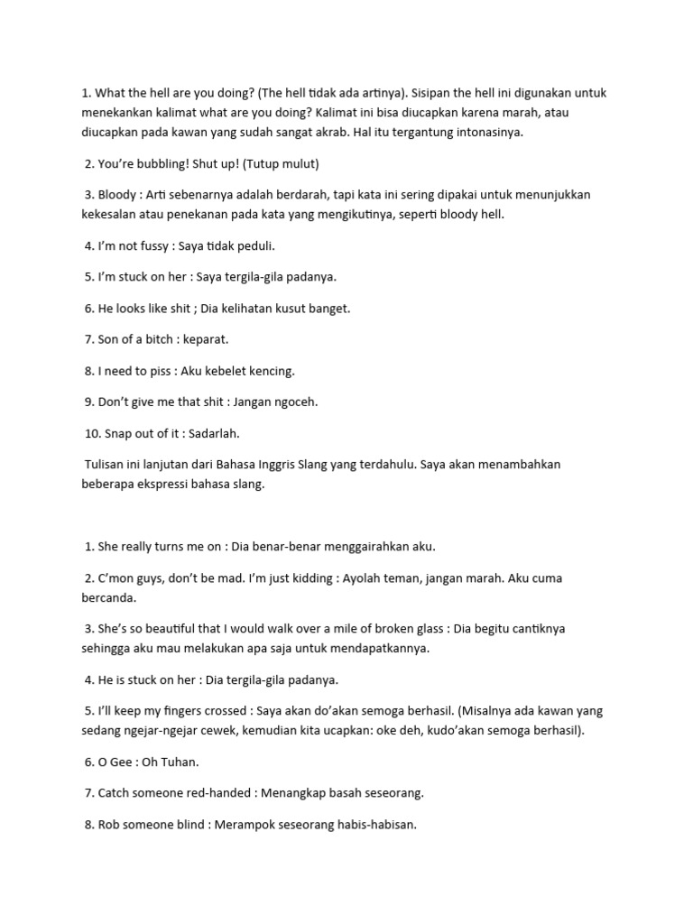 Tulisan ini lanjutan dari Bahasa Inggris Slang yang terdahulu. Saya akan menambahkan