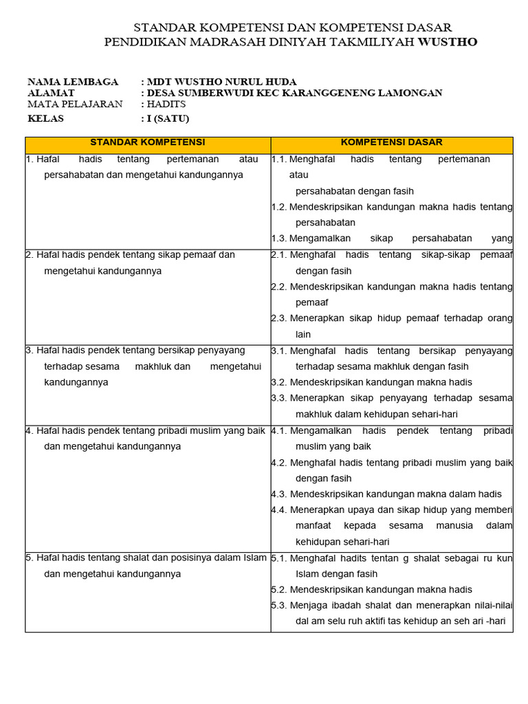 MATA PELAJARAN : HADITS