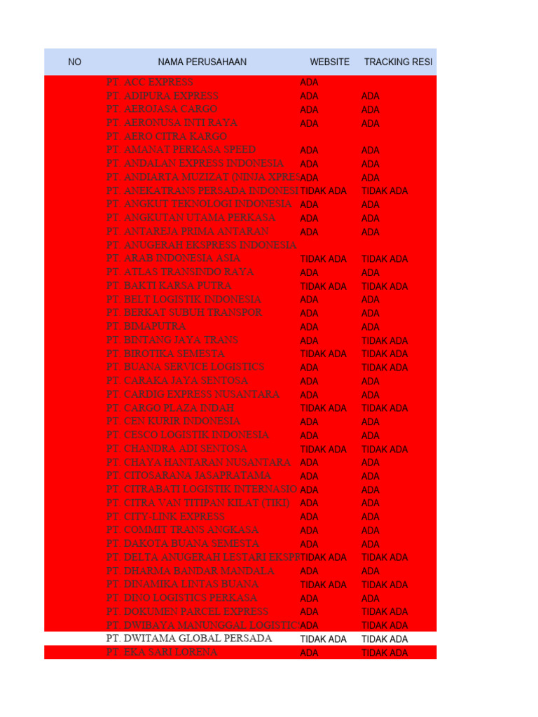 PT. DOKUMEN PARCEL EXPRESS ADA TIDAK ADA