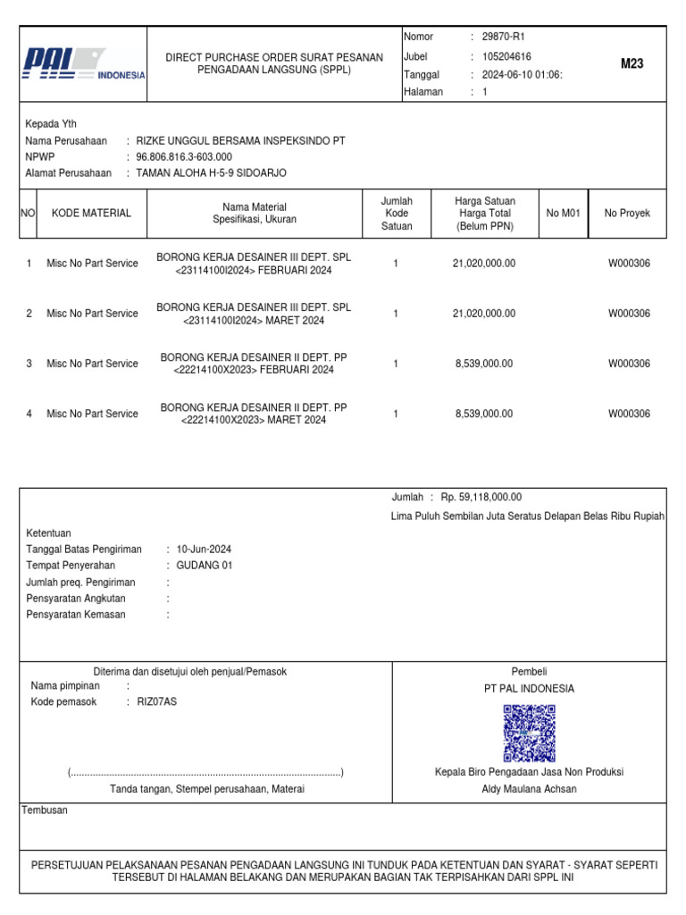 DIRECT PURCHASE ORDER SURAT PESANAN Jubel : 105204616