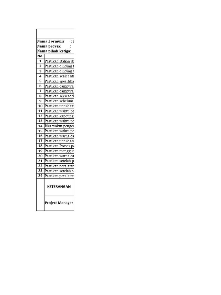 Nama Formulir : Form Ceklist Pekerjaan Cat Dinding