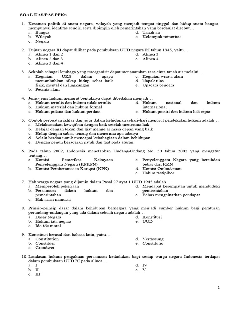 SOAL UAS/PAS PPKn