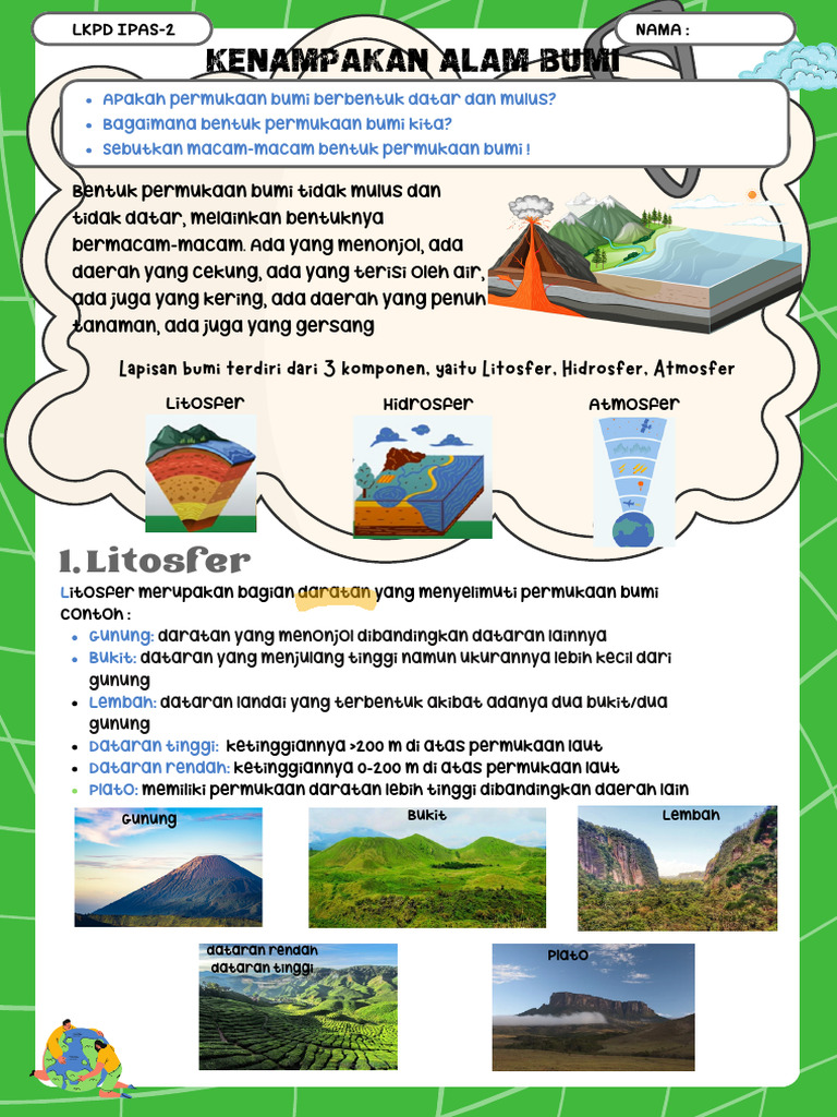 Lapisan bumi terdiri dari 3 komponen, yaitu Litosfer, Hidrosfer, Atmosfer