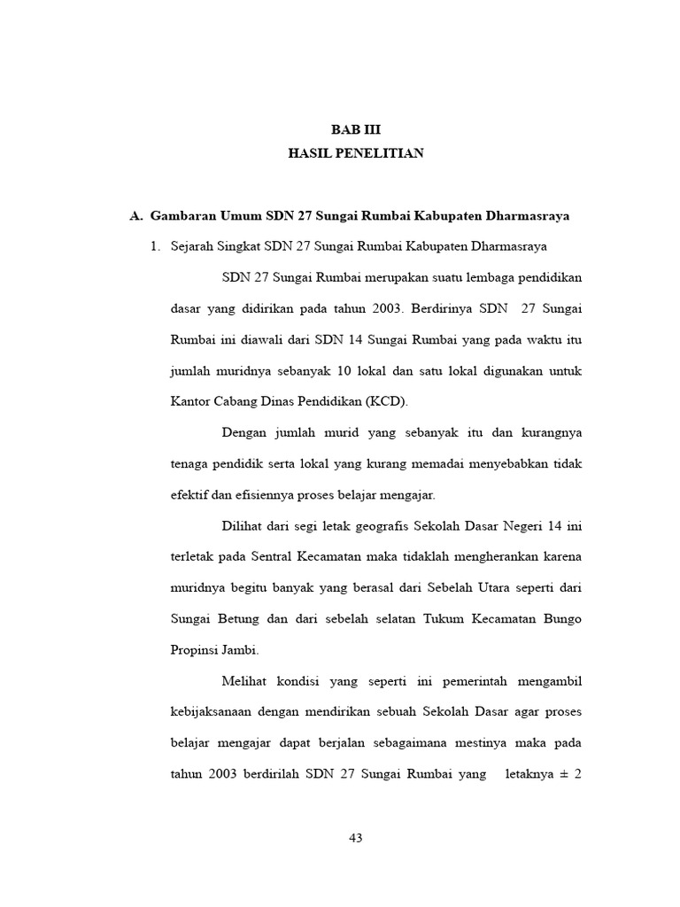 A. Gambaran Umum SDN 27 Sungai Rumbai Kabupaten Dharmasraya