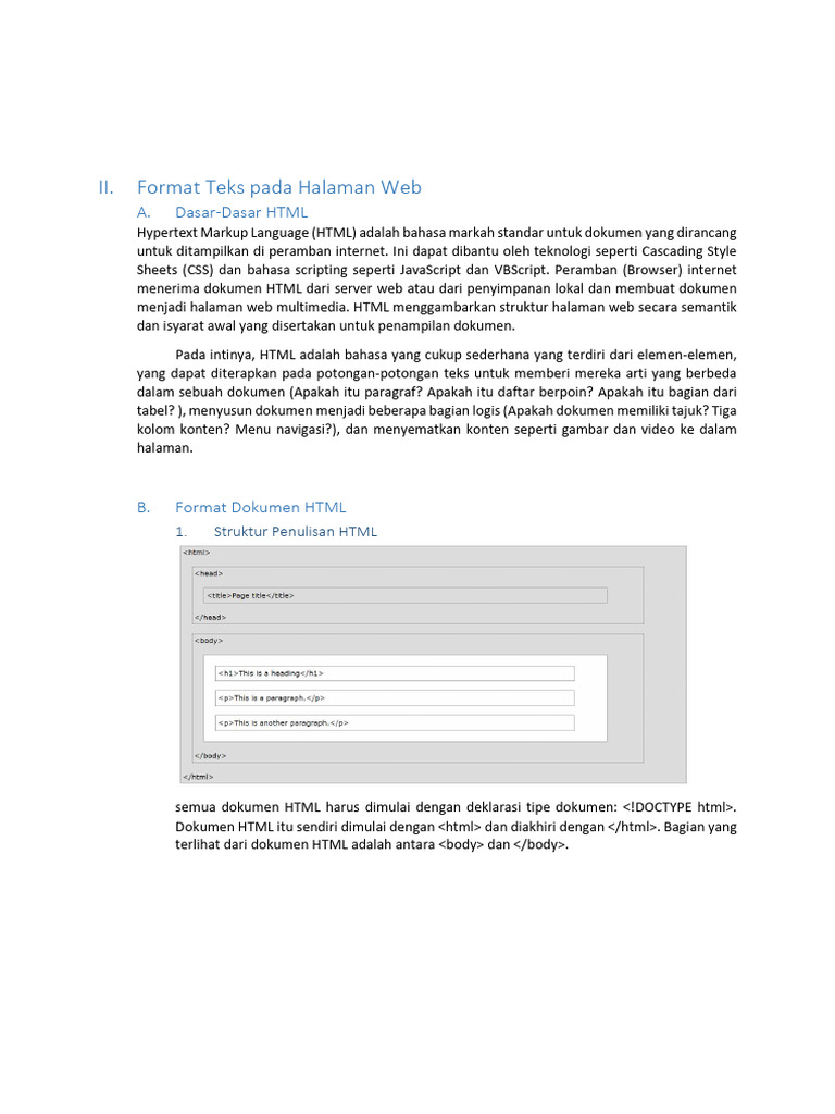 B. Format Dokumen HTML