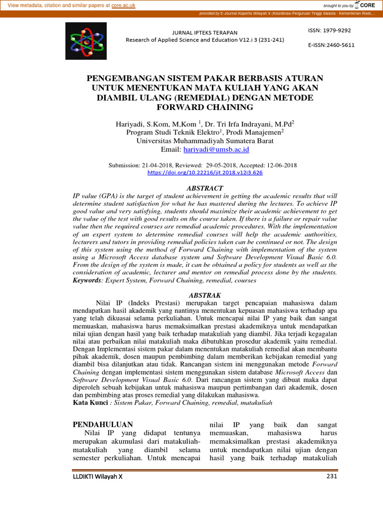 Kata Kunci : Sistem Pakar, Forward Chaining, remedial, matakuliah