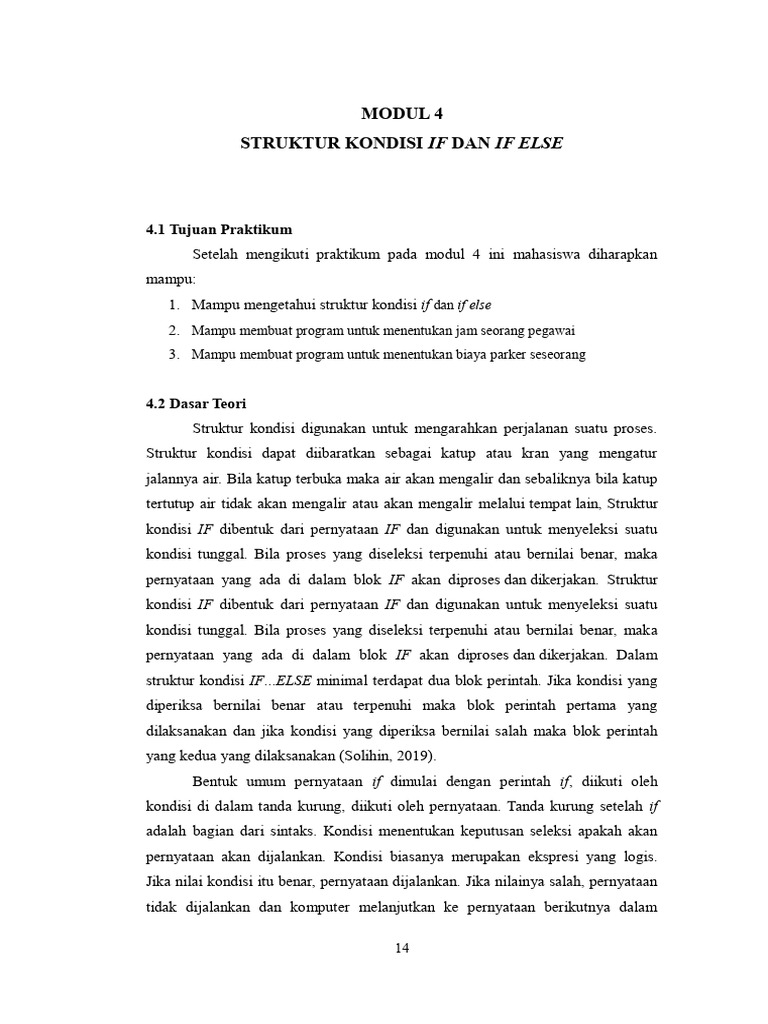 struktur kondisi IF...ELSE minimal terdapat dua blok perintah. Jika kondisi yang