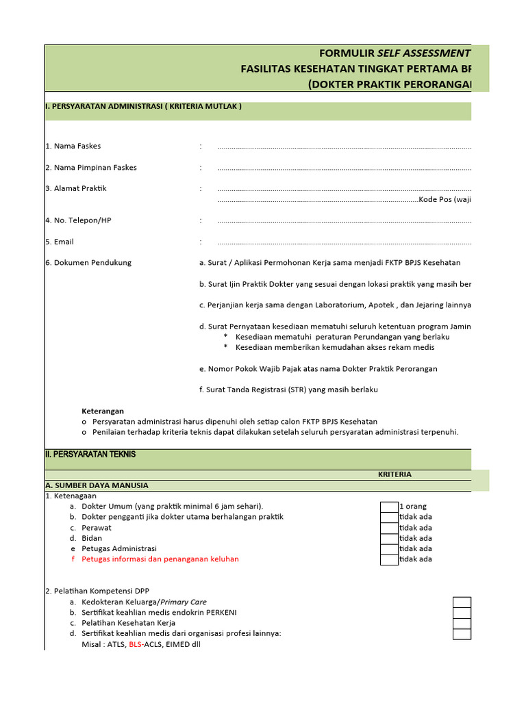 FORMULIR SELF ASSESSMENT