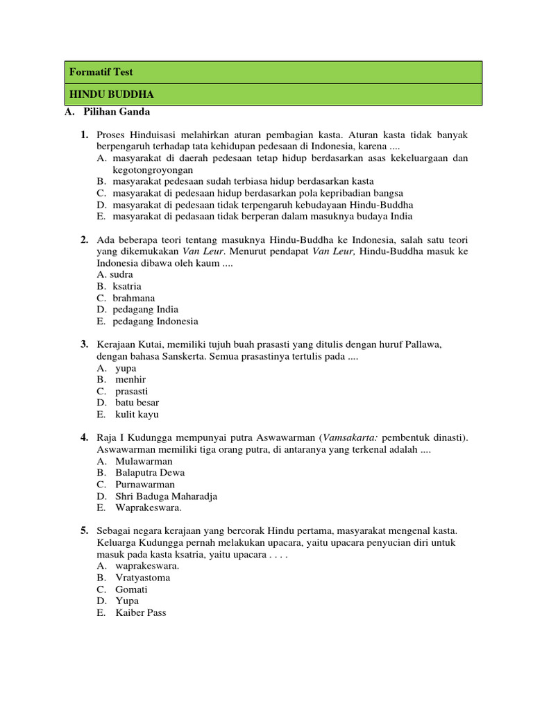 1. Proses Hinduisasi melahirkan aturan pembagian kasta. Aturan kasta tidak banyak