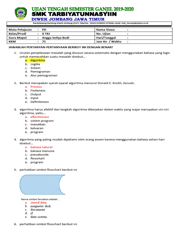 Kelas/Prodi : X TKJ No. Ujian :