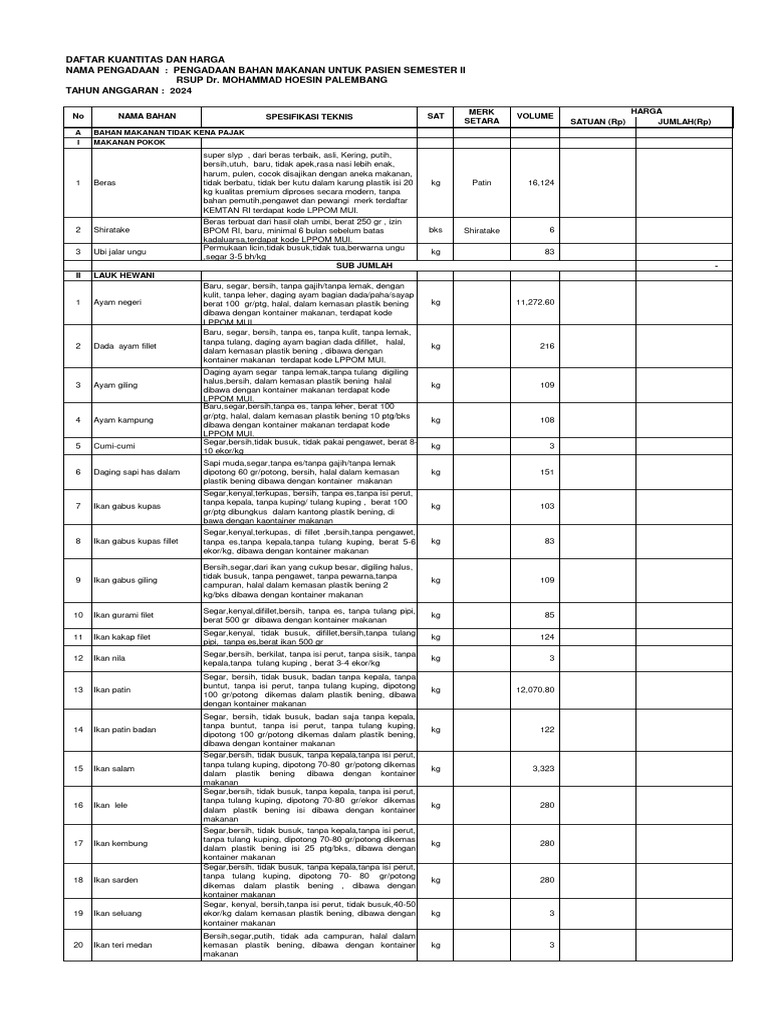 NAMA PENGADAAN : PENGADAAN BAHAN MAKANAN UNTUK PASIEN SEMESTER II