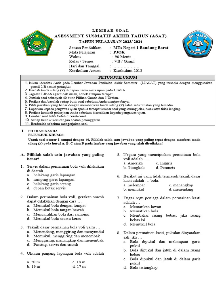 4. Jumlah soal sebanyak 40 butir Pilihan Ganda dan 5 Uraian.