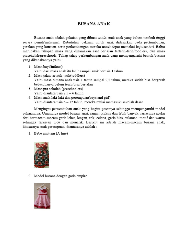 sehingga terkesan lucu dan menarik. Berikut ini adalah macam-macam busana anak,