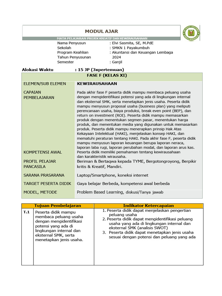 CAPAIAN Pada akhir fase F peserta didik mampu membaca peluang usaha