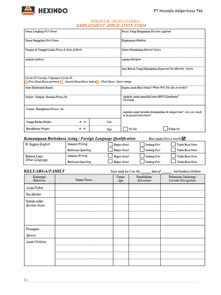 Saya mengerti bahwa Formulir Aplikasi Data Diri ini tidak I understand that this Employment Application Form does