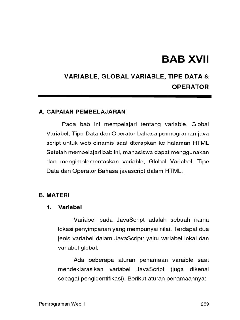 Pada bab ini mempelajari tentang variable, Global