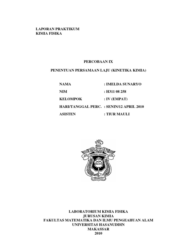 LABORATORIUM KIMIA FISIKA JURUSAN KIMIA FAKULTAS MATEMATIKA DAN ILMU PENGEAHUAN ALAM UNIVERSITAS HASANUDDIN MAKASSAR 2010
