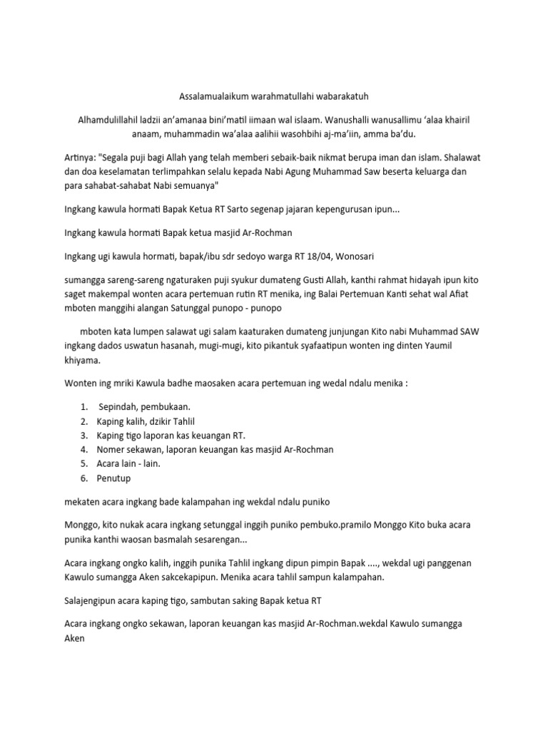 Ingkang kawula hormati Bapak Ketua RT Sarto segenap jajaran kepengurusan ipun...