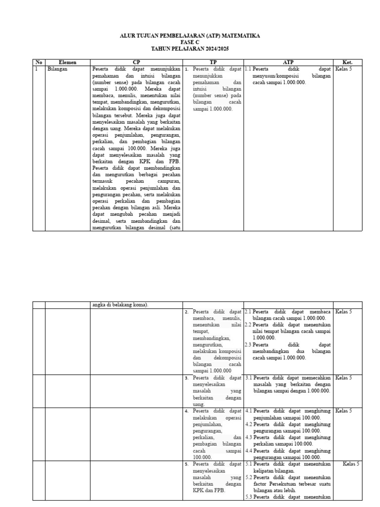 ALUR TUJUAN PEMBELAJARAN (ATP) MATEMATIKA
