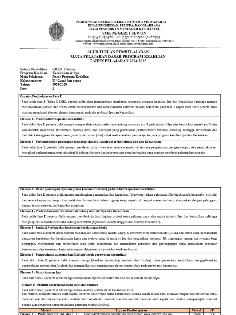 Pada akhir fase E, peserta didik mampu mendeskripsikan lingkup profesi serta peluang pasar dan usaha industri Spa dan kecantikan sehingga