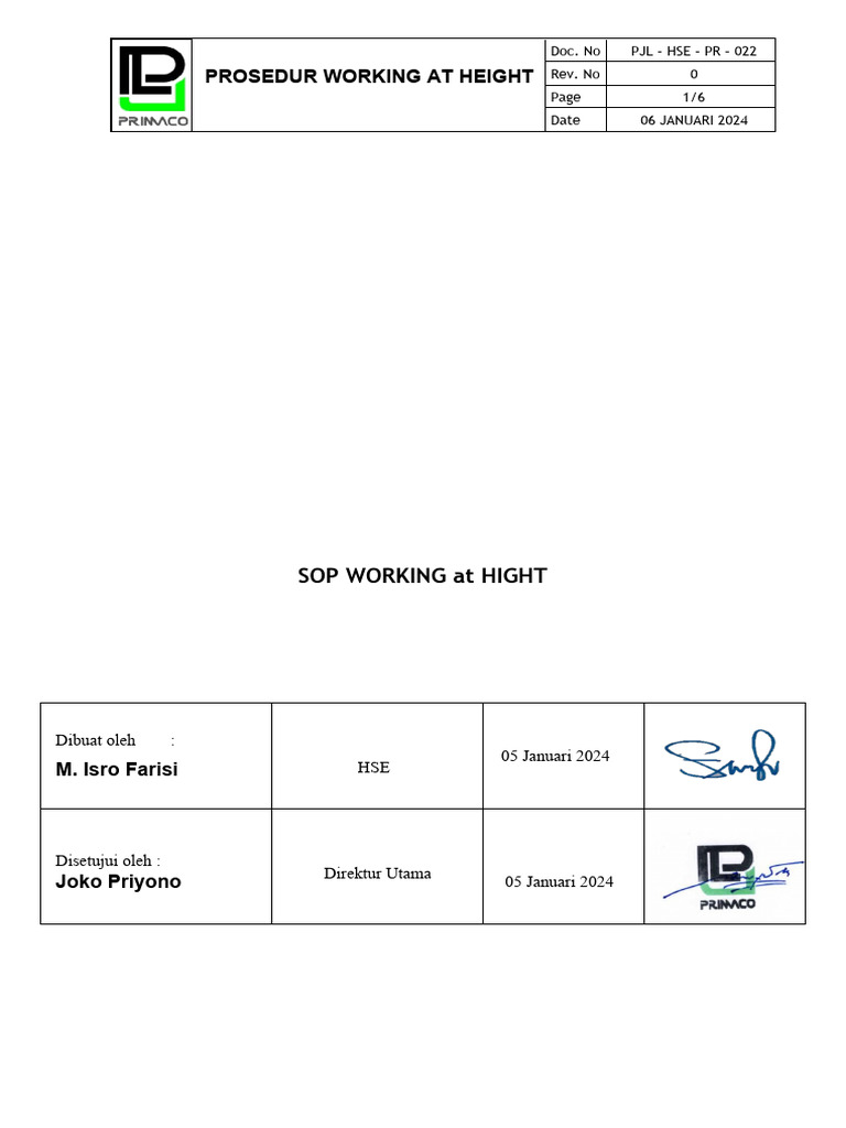 PROSEDUR WORKING AT HEIGHT Rev. No 0