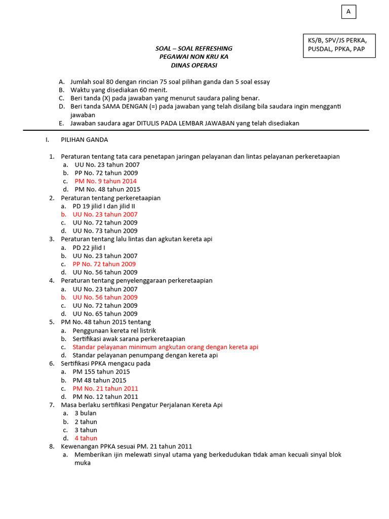 SOAL – SOAL REFRESHING PUSDAL, PPKA, PAP