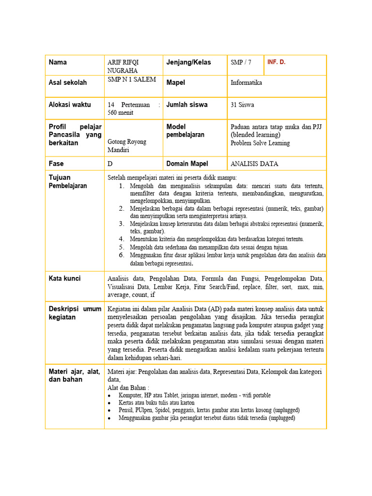 Asal sekolah SMP N 1 SALEM Mapel Informatika